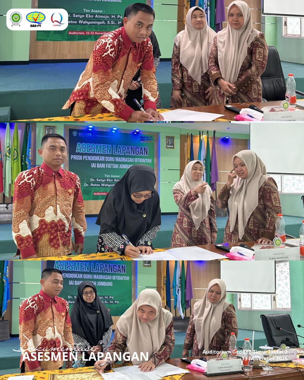 Jombang, 13 November 2025 – Program Studi Pendidikan Guru Madrasah Ibtidaiyah (PGMI) Institut Agama Islam Bani Fattah (IAIBAFA) Jombang telah sukses melaksanakan kegiatan Asesmen Lapangan (AL) Akreditasi oleh Lembaga Akreditasi Mandiri Kependidikan (LAMDIK) pada tanggal 12 hingga 13 November 2025. Kegiatan ini berjalan dengan lancar dan kondusif, didukung penuh oleh seluruh civitas akademika IAIBAFA, menunjukkan kesiapan prodi dalam menjamin kualitas pendidikan.
